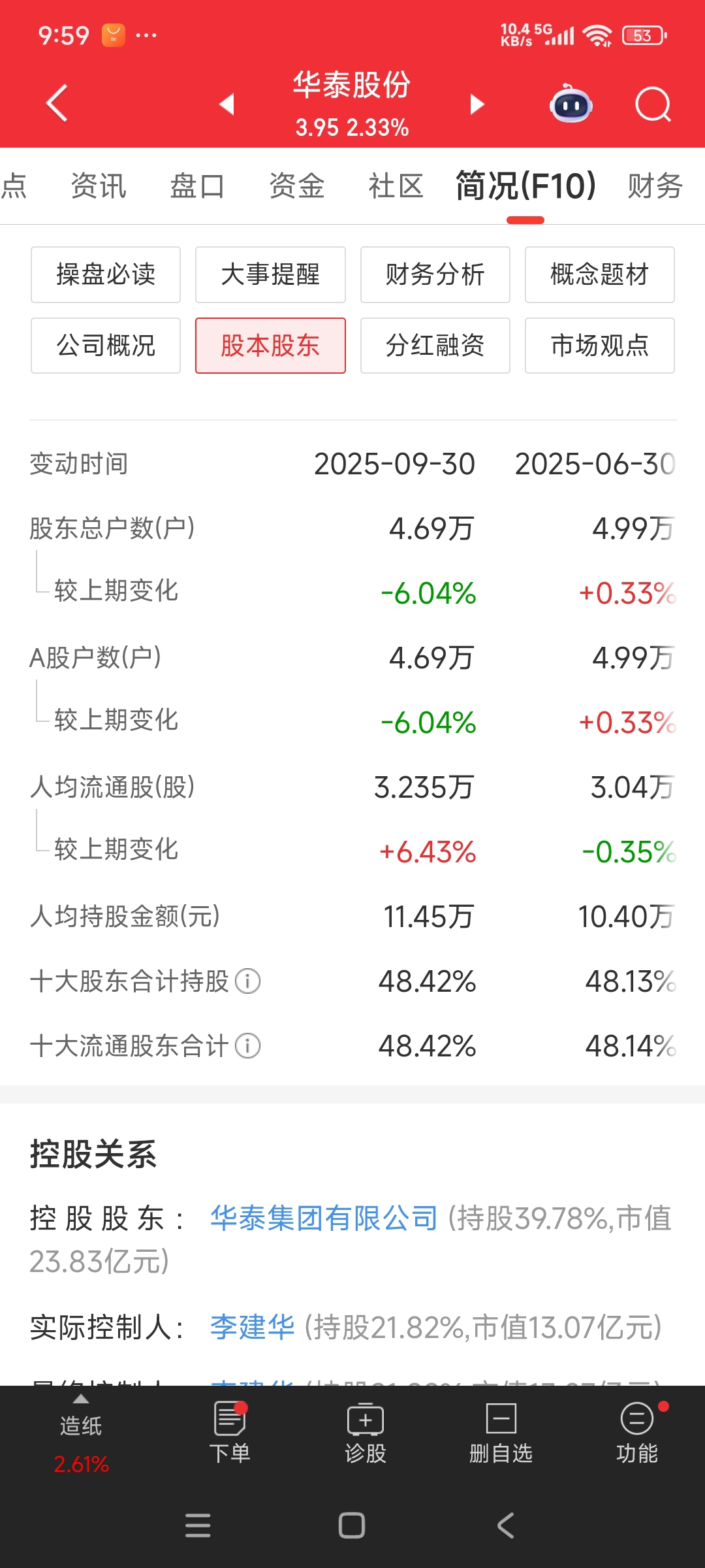 $华泰股份(SH600308)$ 9月30号股东人数4.69万