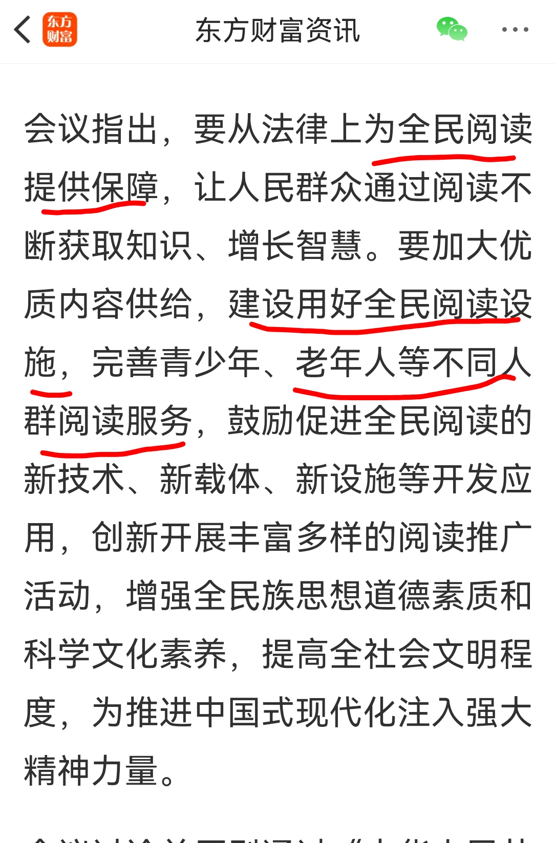 太好了,全民阅读!全民阅读设施那就是大量建图书馆阅览室,最好是社区也建阅览室,让