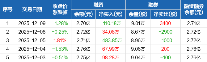 华泰股份:融资净偿还110.18万元,融资余额2.7亿元(12-09)