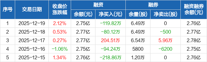 华泰股份:融资净偿还119.82万元,融资余额2.75亿元(12-19)