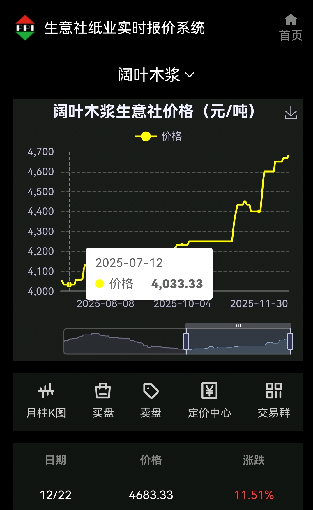 大家看看下半年山东阔叶浆价格大涨了多少,特别是进入四季以来阔叶浆价格大涨了多少,