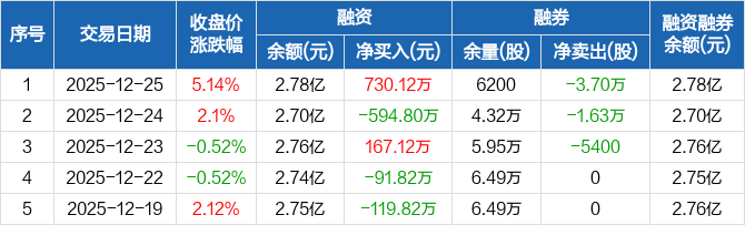 华泰股份:融资净买入730.12万元,融资余额2.78亿元(12-25)