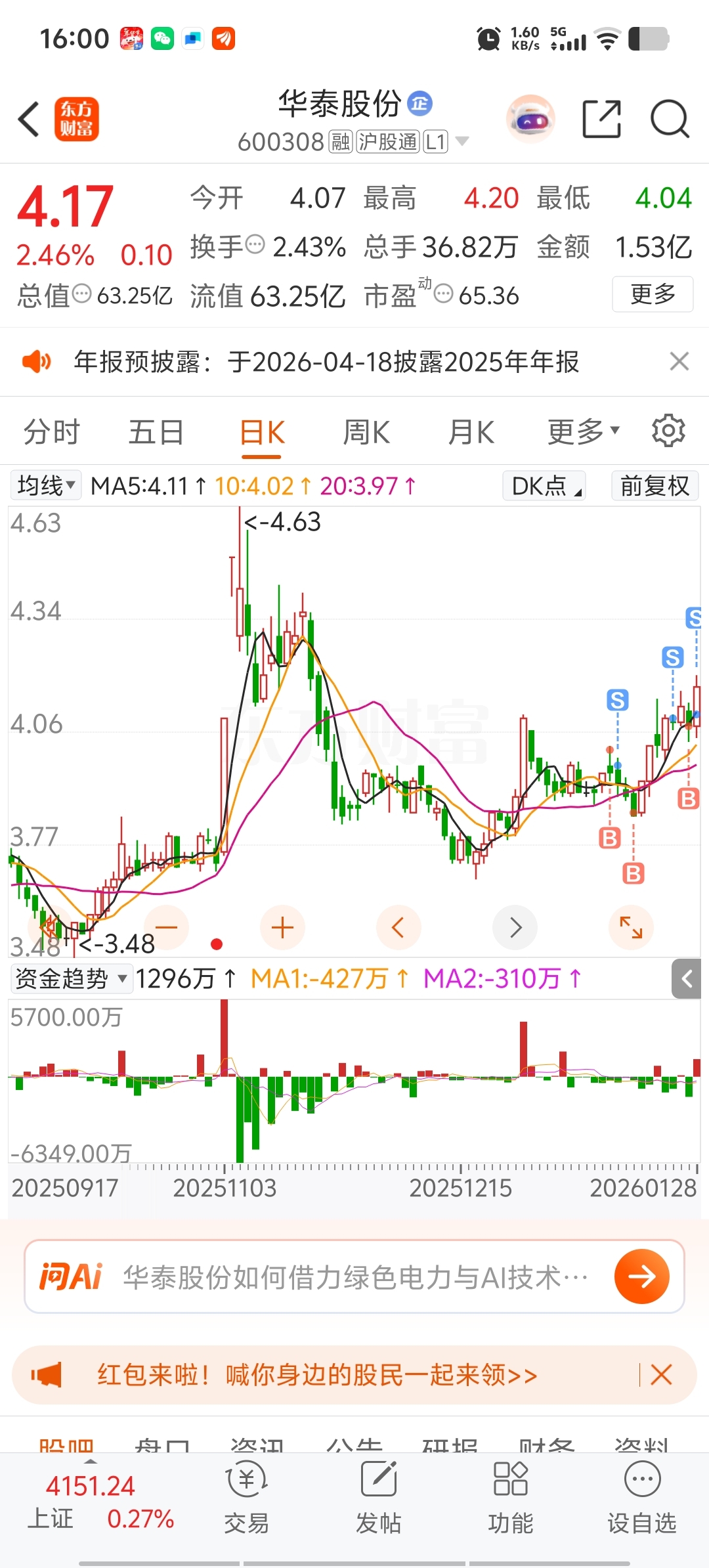 $华泰股份(SH600308)$ 说实话我是很想吐槽我一卖就飞的,不过华哥让我赚了7个点我也不能忘恩负义,后面继续关注,里面的兄弟也别动不动就叫退市,人家在涨也叽叽歪歪