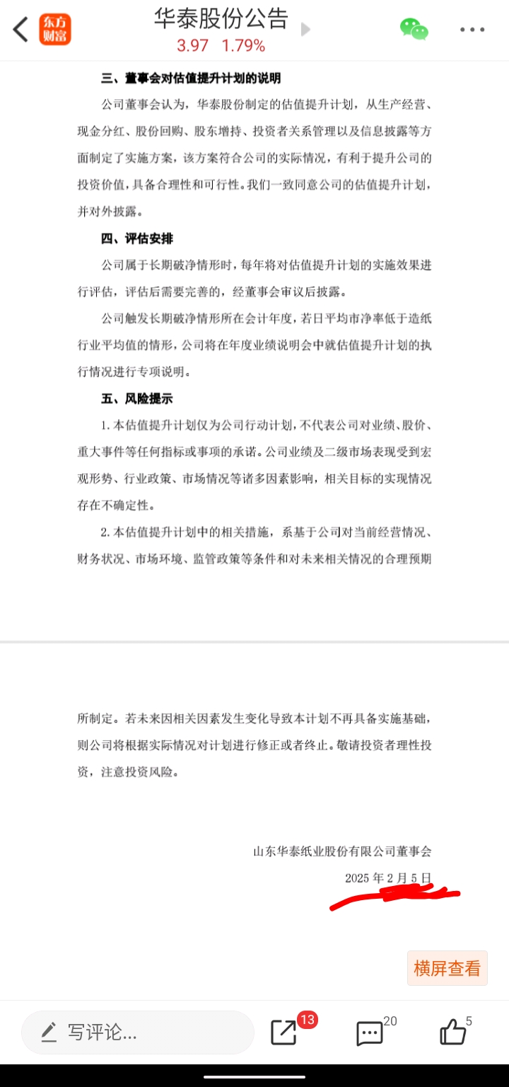 热烈庆祝华泰股份估值提升计划公告一周年纪念日!估值提升计划公告一年来华泰股份没有
