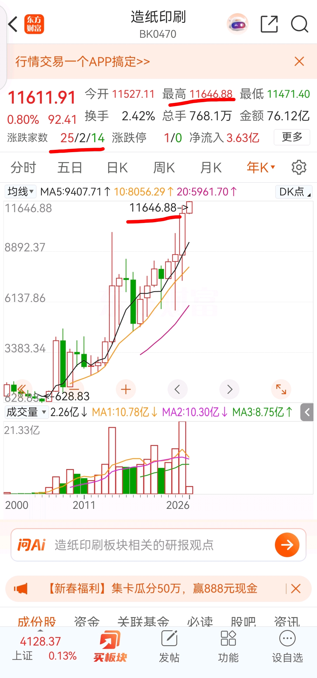 华泰股份总是说股价受行业和市场的影响,昨天造纸印刷行业指数又创历史新高了,而且行