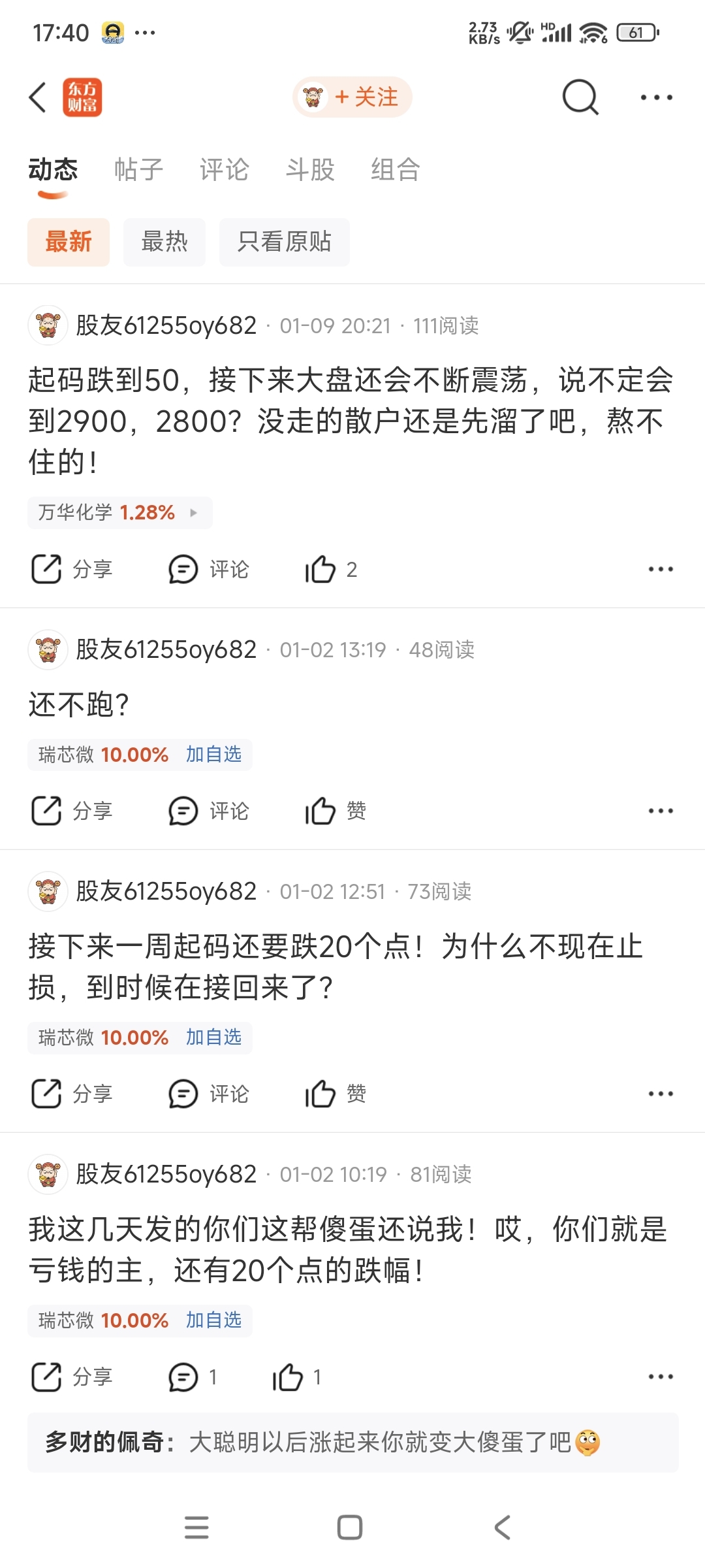 温馨提示: 1.根据《证券法》规定,禁止编造、传播虚假信息或者误导性信息,扰乱证券市场;2.用户在本社区发表的所有资料、言论等仅代表个人观点,与本网站立场无关,不对您构成任何投资建议。用户应基于自己的独立判断,自行决定证券投资并承担相应风险。《东方财富社区管理规定》