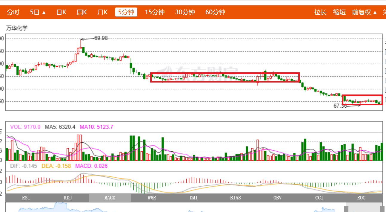 5分钟级别上有一个箱体,周五给击穿后多方力度不强,周一开盘如果没有大力度向上大概