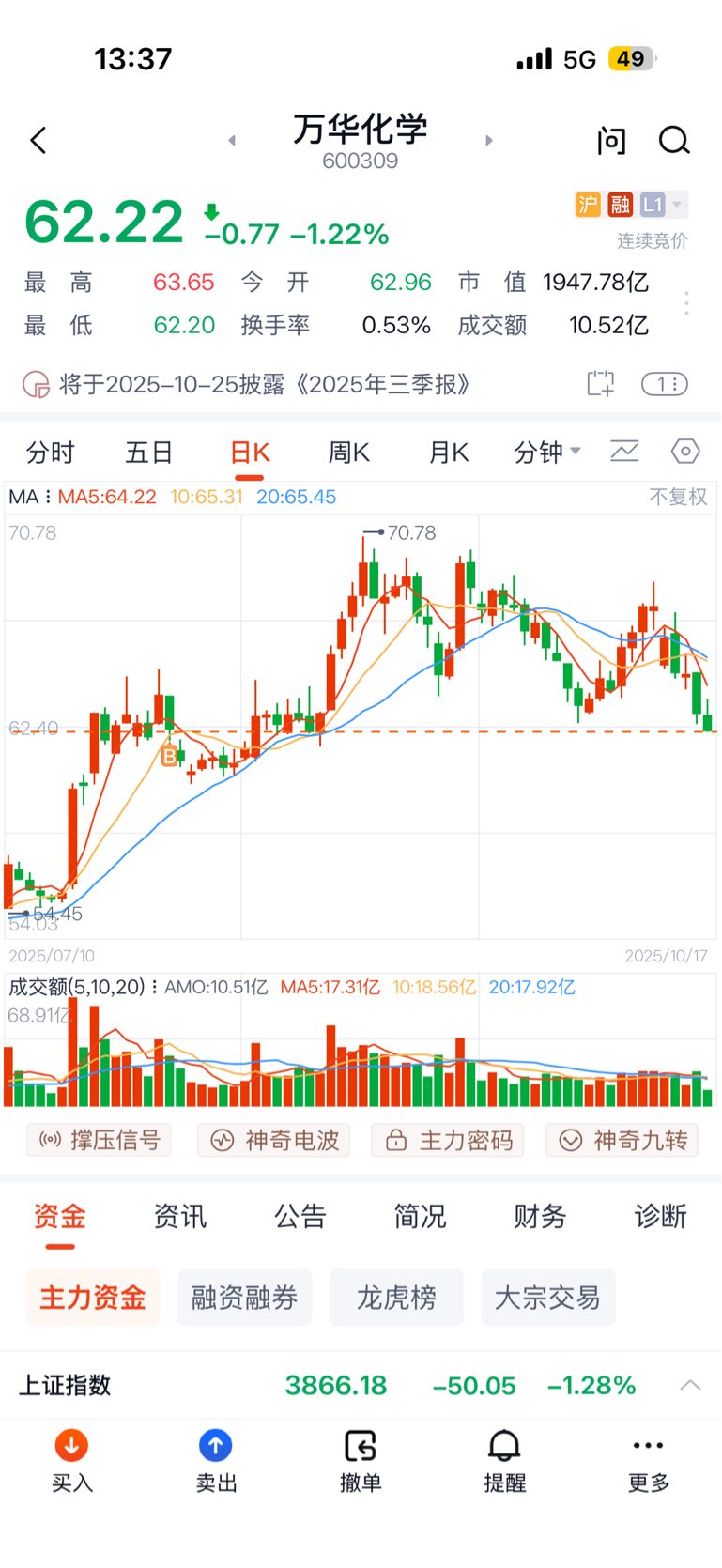 $万华化学(SH600309)$ 跌回成本价