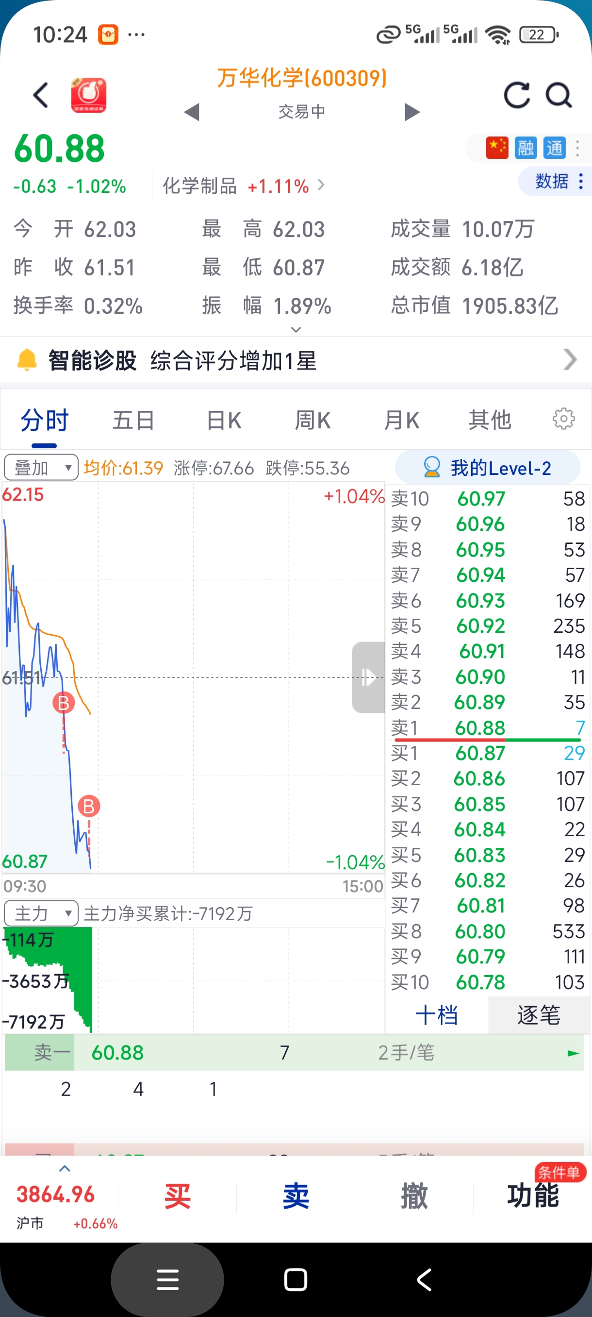 $万华化学(SH600309)$ 59.5到61,阶梯式挂了一批单,如果全部买进去了,成本应该在60左右,仓位是3层,仅供参考,保守派可以等三季报落地了再买,三季报落地之后,业绩如果不行,战神再加两层,最多是五层仓,以上为战神后续操作规划