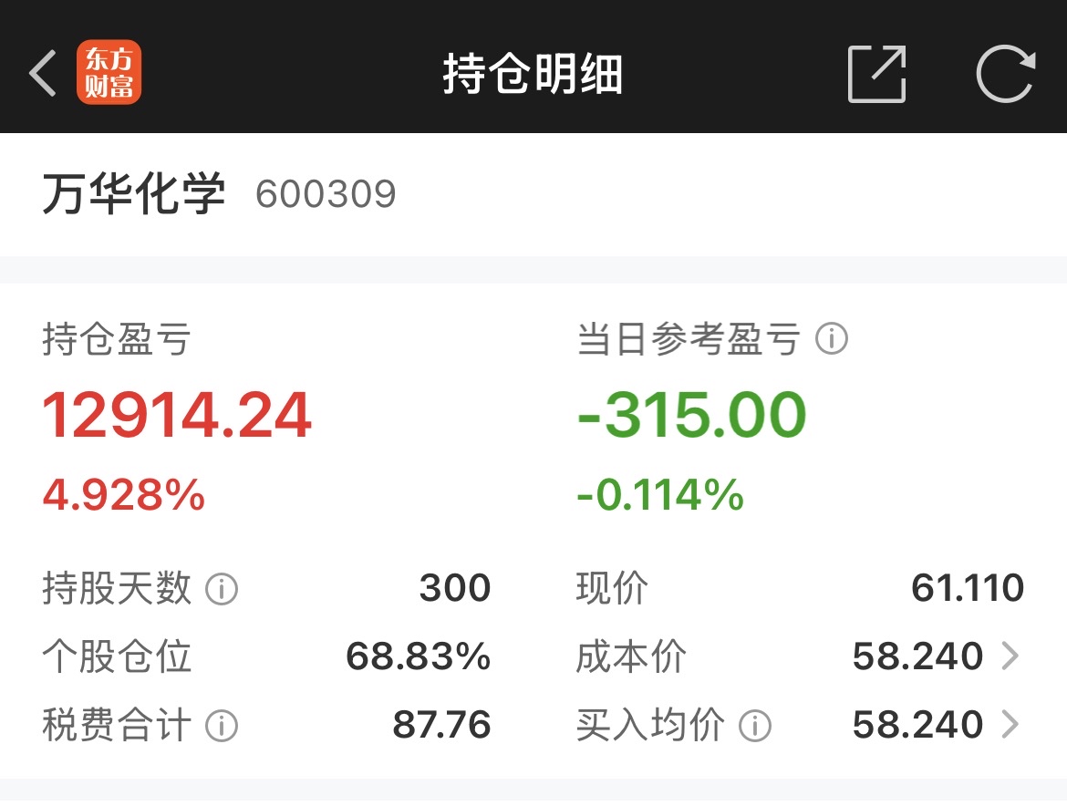 $万华化学(SH600309)$ 卖了不?可惜70的时候没卖……