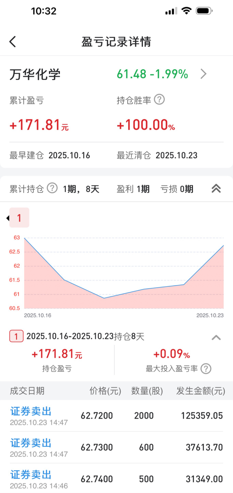 $万华化学(SH600309)$ 手续费都比赚的多,套了一个星期,还好没格局