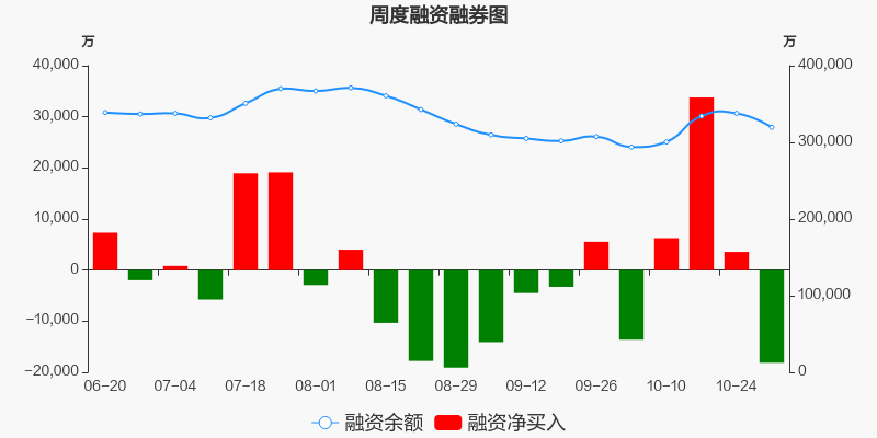 万华化学本周(2025/10/27-2025/10/31)累计涨幅达1.92%,截至10月31日最新股价报收62.63元。从增量上来看,10月27日至10月31日融资买入交易规模7.93亿元,融资偿还规模9.74亿元,期内融资净偿还1.81亿元。从存量上来看,截止11月2日,万华化学融资融券余额32.07亿元,其中融资余额规模31.97亿元,融券余额规模985.17万元。
