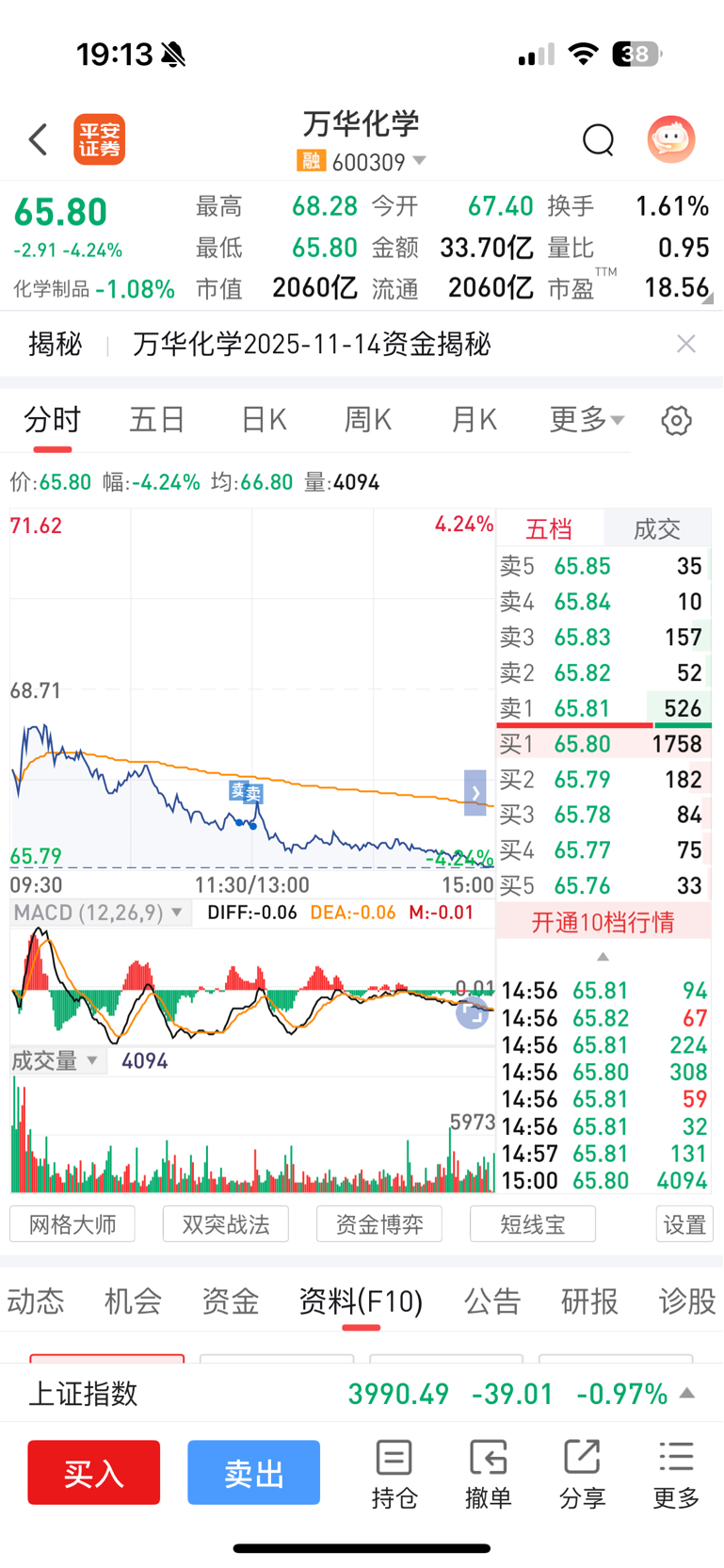今日清仓了,调仓换股,又要减持,股价被压制,这波化工上涨,万华都没有表现,等减持