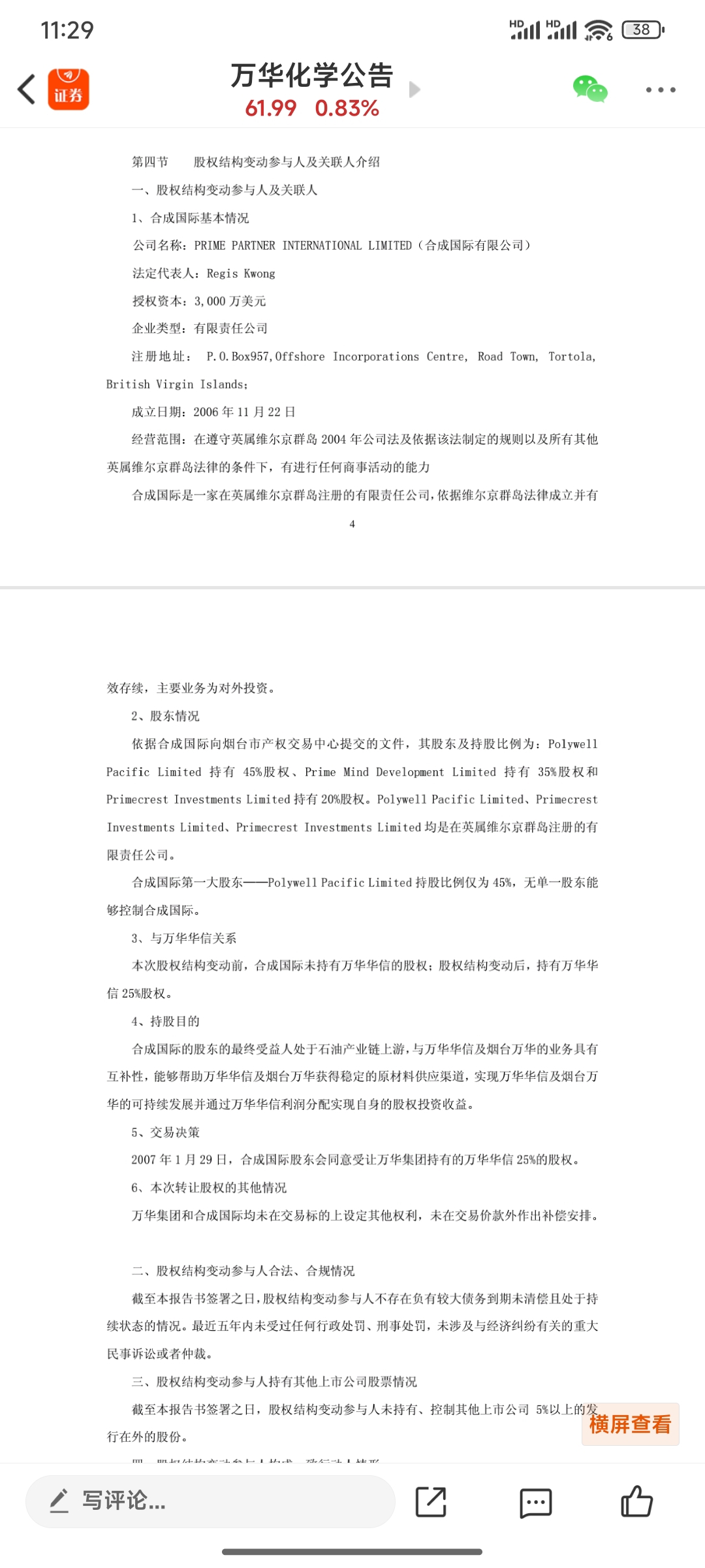 合成国际这假外资背后的实控人是谁?合成国际成立于2006年11月,2007年的时候合成国际就入资万华实业了。这么大金额外汇是怎么出去的?左手倒右手?