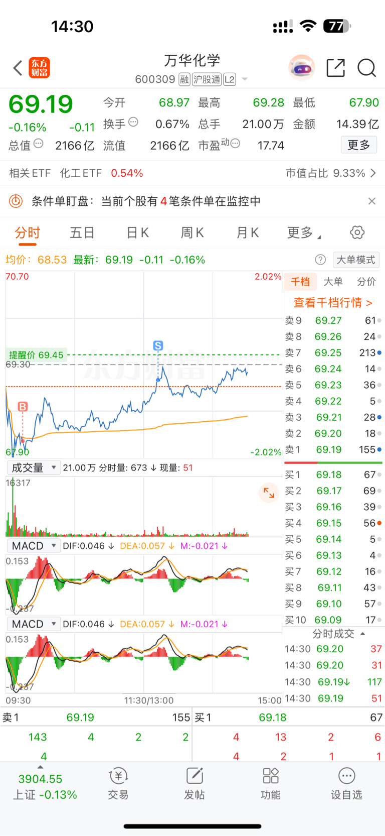 $万华化学(SH600309)$ 每天薅一点羊毛,以慰藉我受伤的心灵