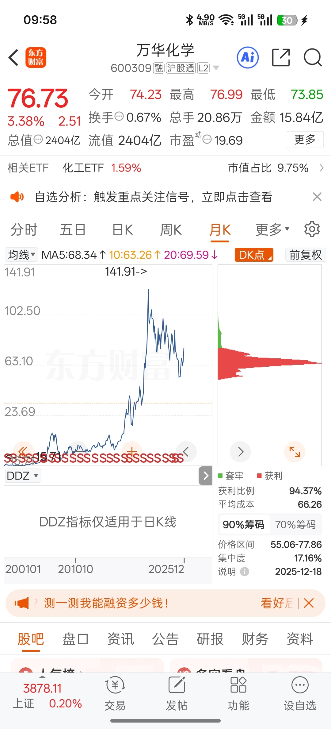 $万华化学(SH600309)$ 买了你之后才知道段永平巴菲特所说的低价买入优质公司是什么意思,很久不操作了都,可惜五六十让加仓买的时候一堆人在喷我,但我相信那些喷我当时被套的人现在也已经早已卖了。