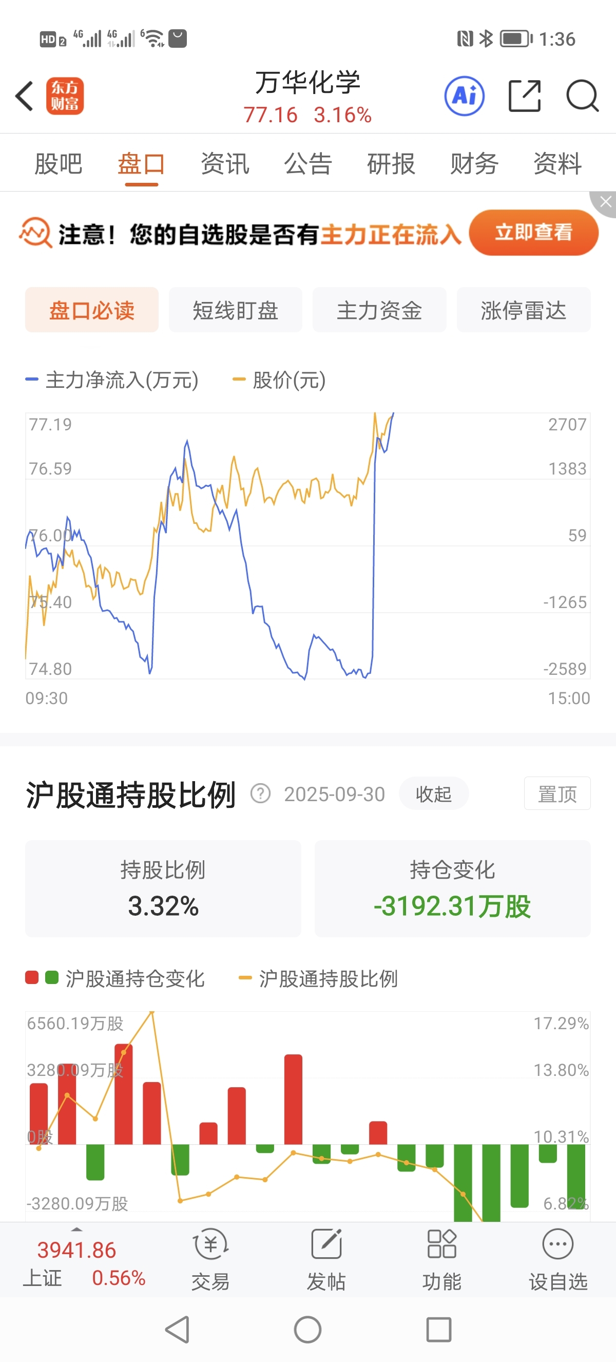 $万华化学(SH600309)$ 你们哪是主力的对手啊