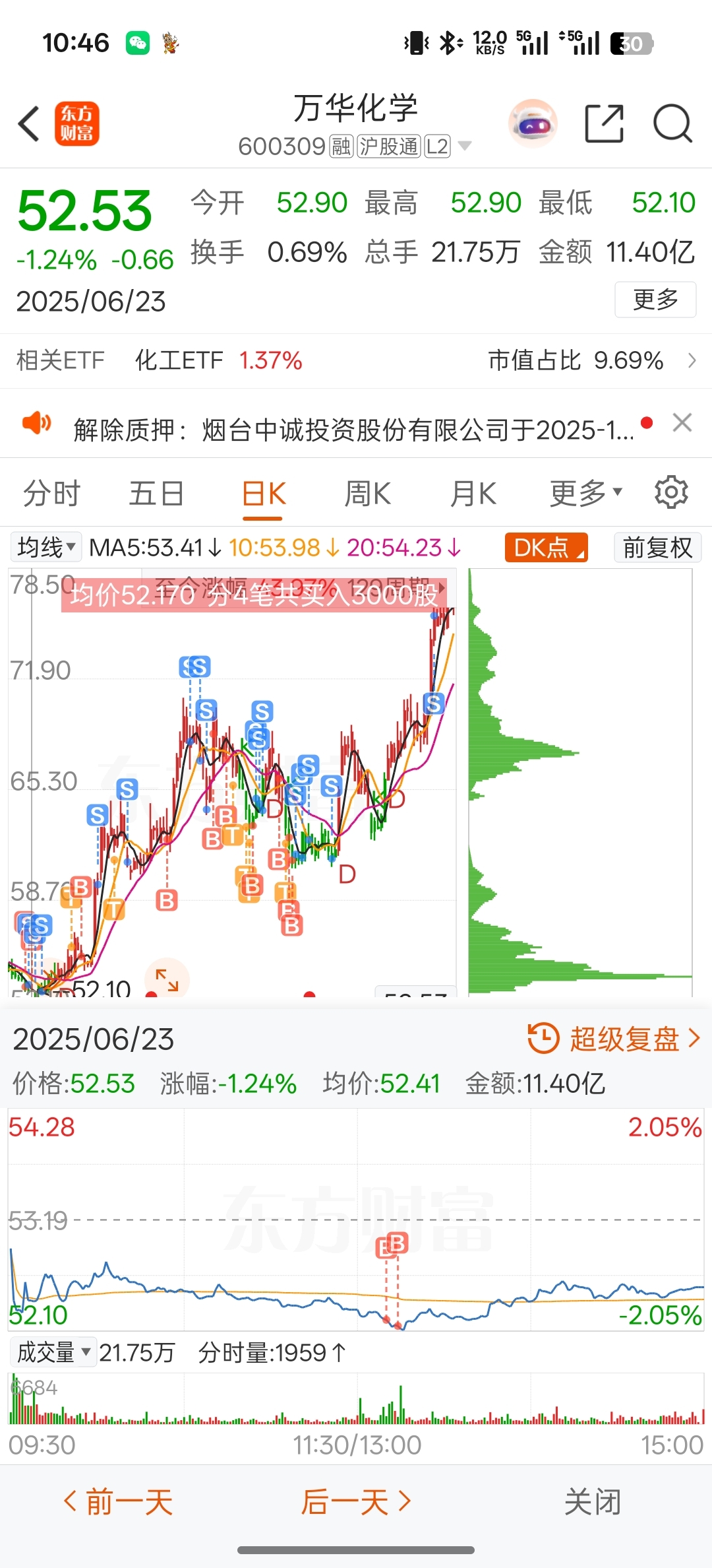 $万华化学(SH600309)$ 没想到当时真的是买到了底,一路上缝缝补补,现在剩的底仓是肯定不会动了,只会择机加仓,绝不会卖