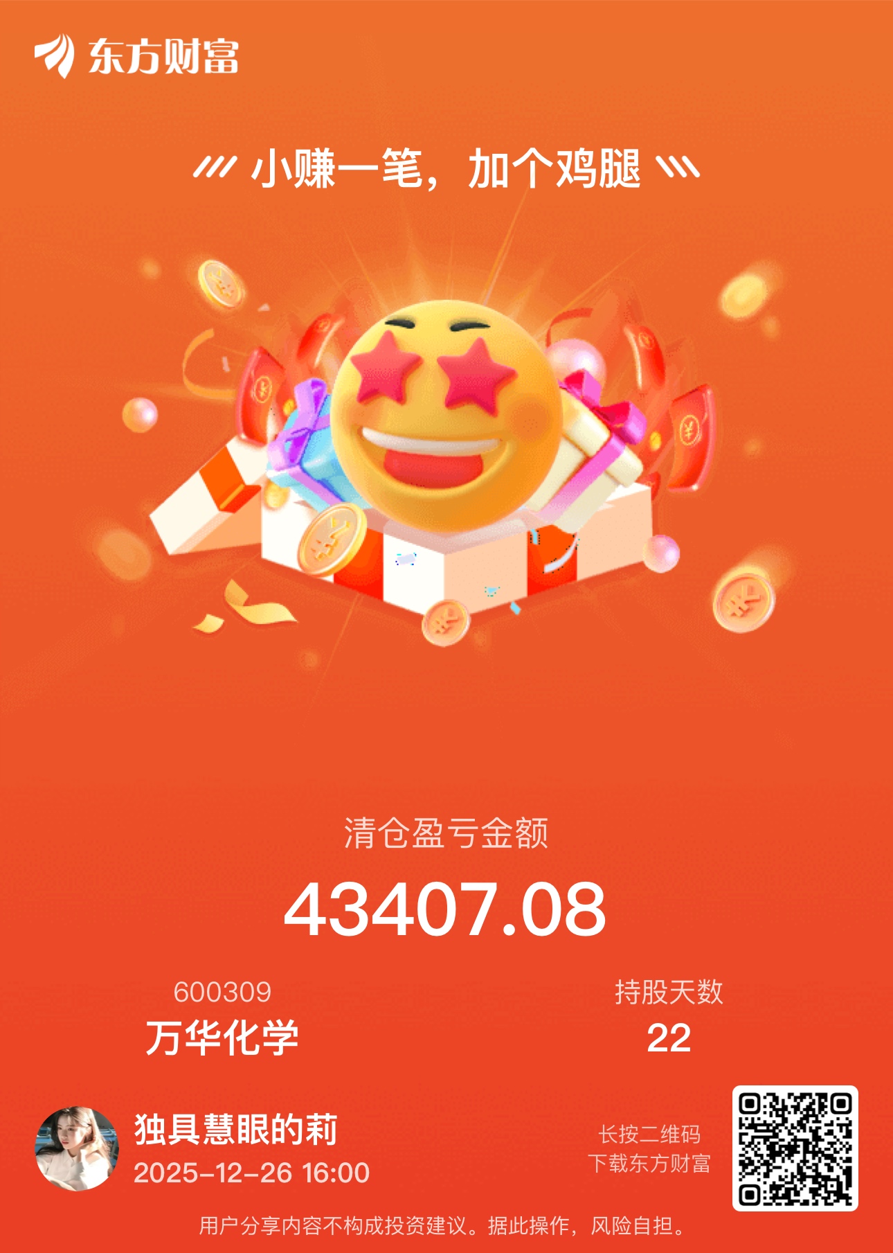 $万华化学(SH600309)$ 跑了,留下的发财