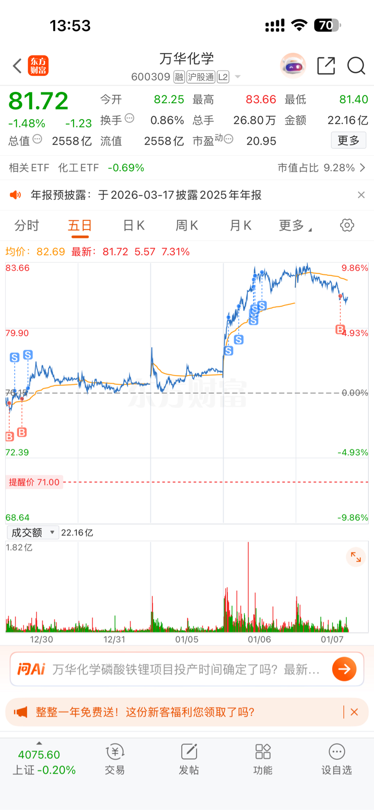 $万华化学(SH600309)$