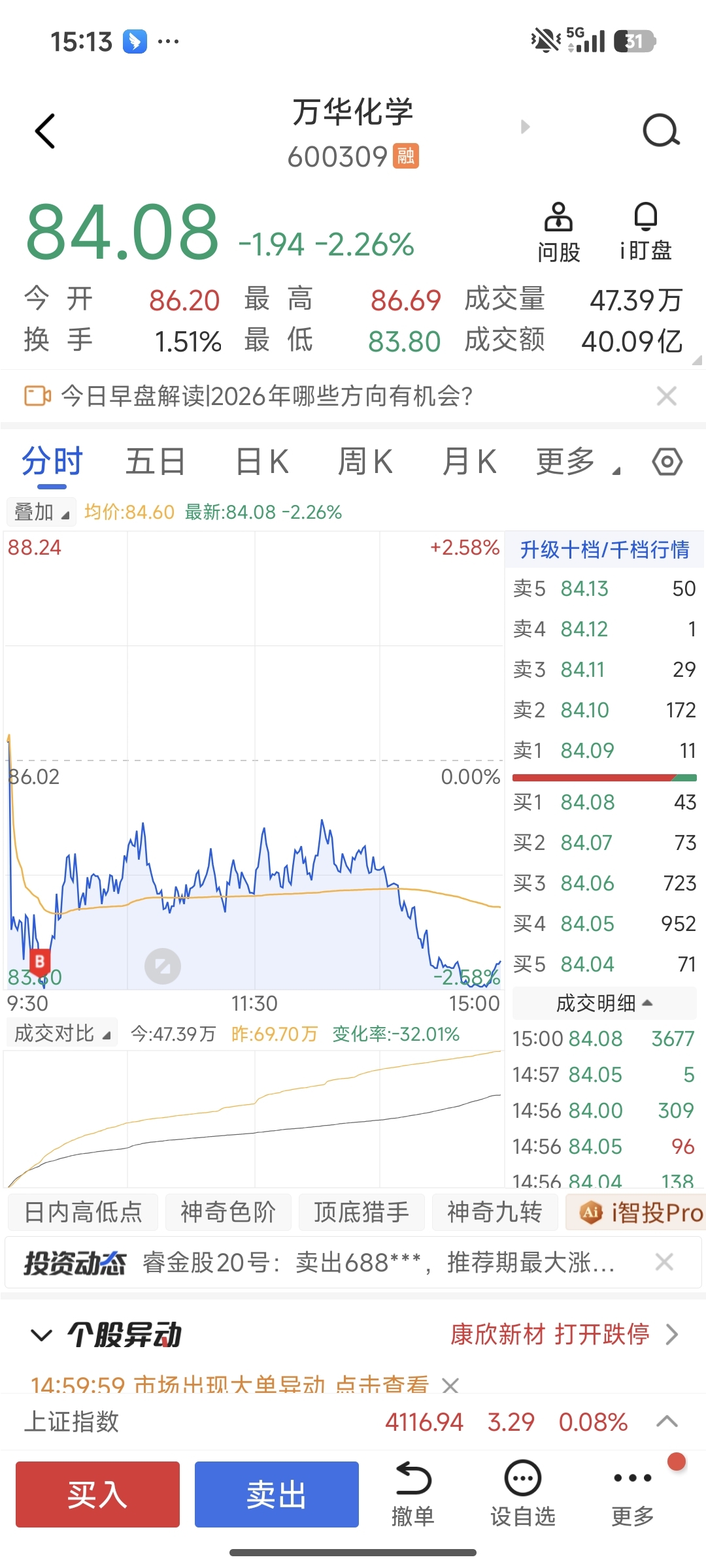 $万华化学(SH600309)$ 还以为抄到底了,白开心一场