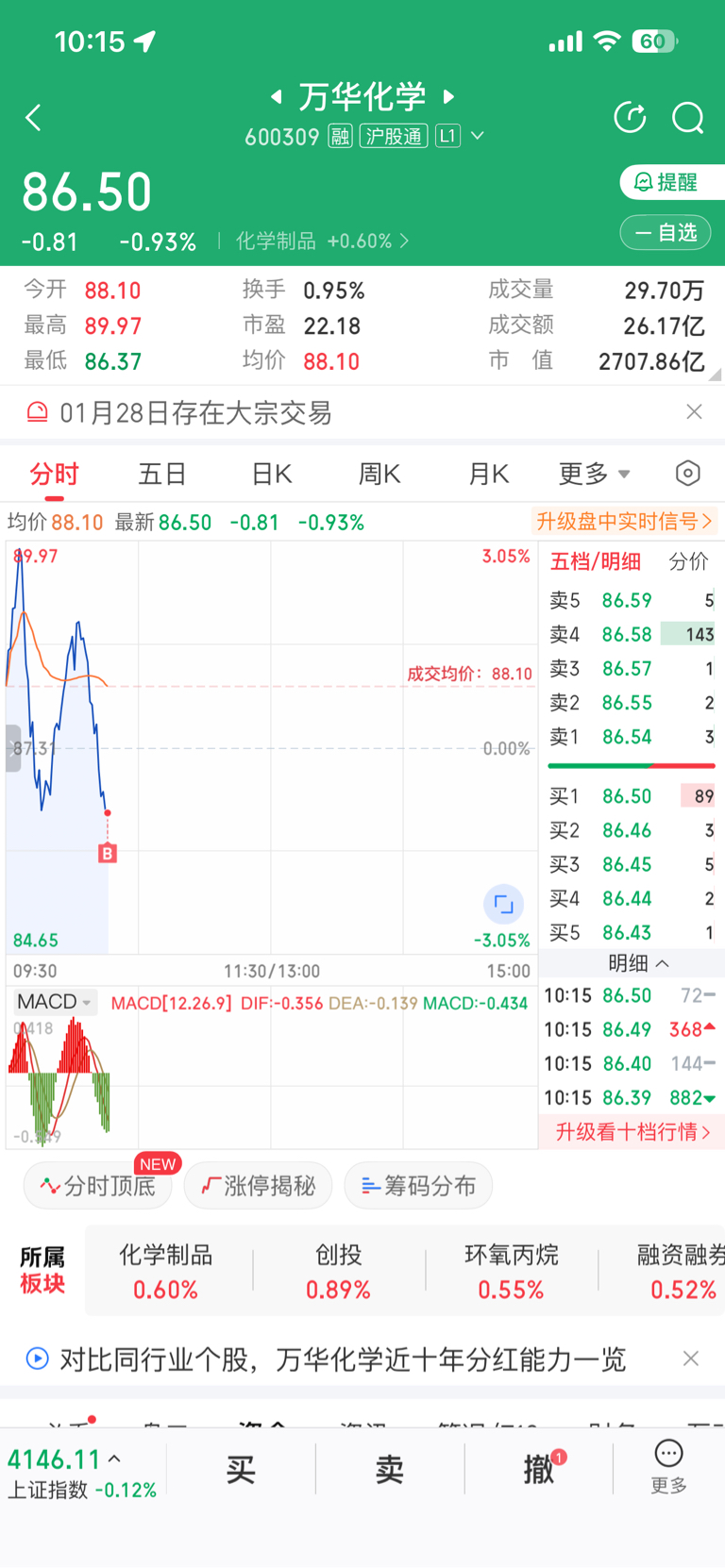 $万华化学(SH600309)$ 成功买回