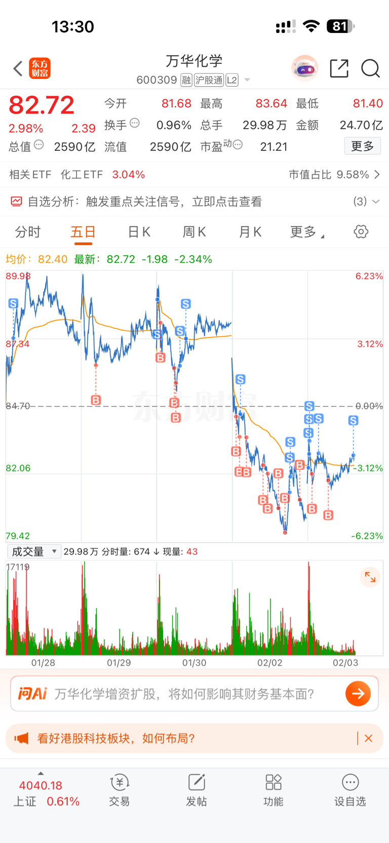 $万华化学(SH600309)$ 今天就这样吧