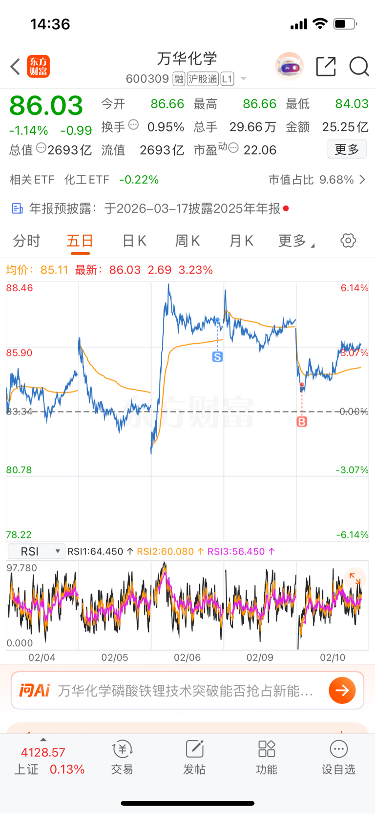 $万华化学(SH600309)$ 拿不住就变成频繁交易了