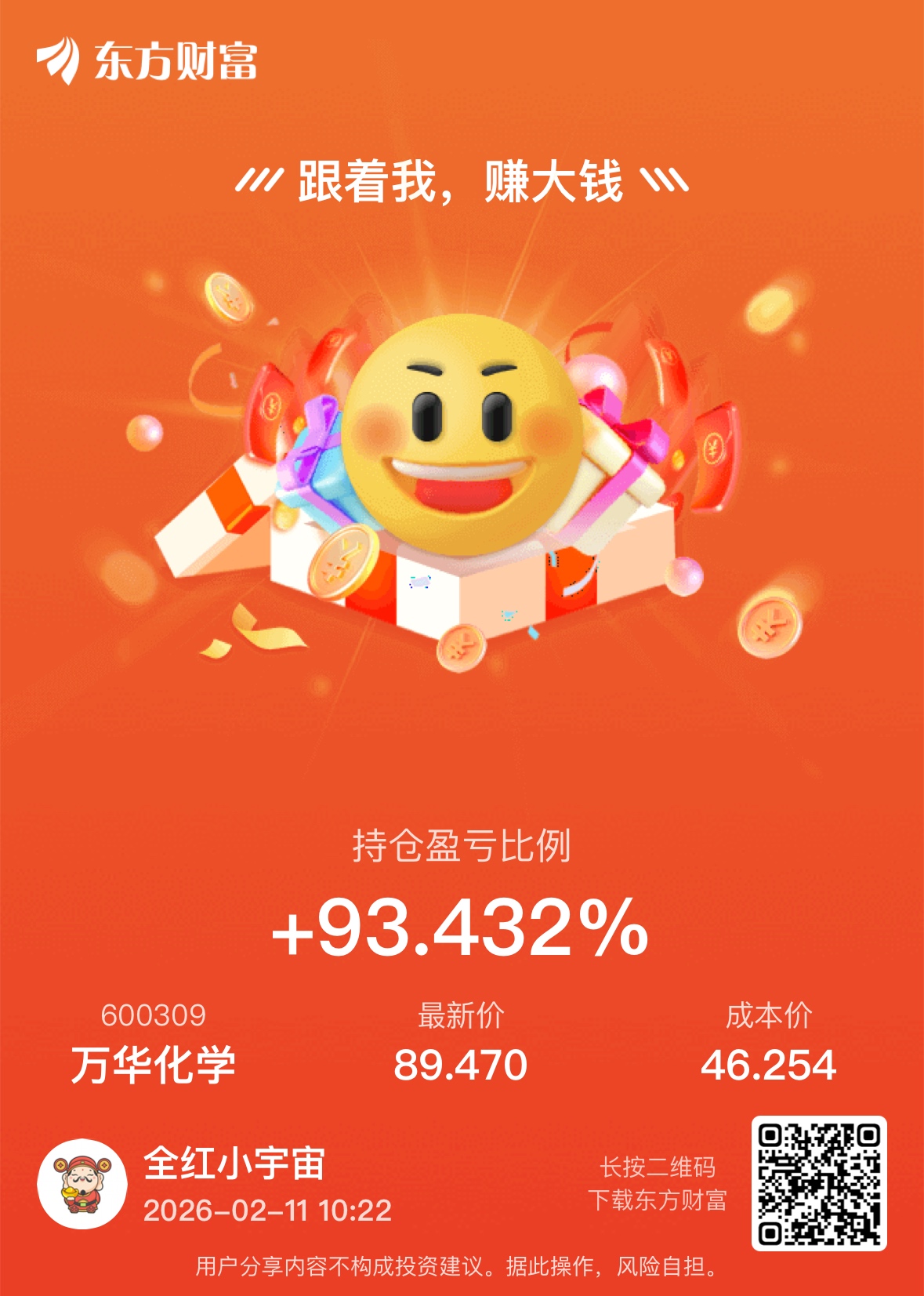 $万华化学(SH600309)$ 快100%了