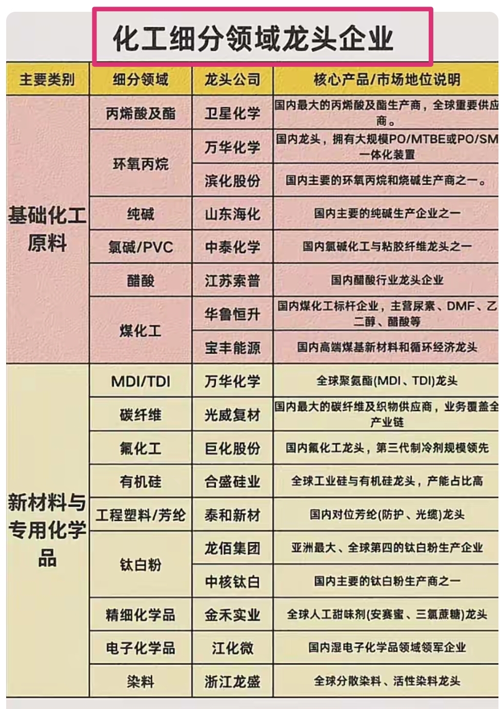 二、化工细分龙头全梳理:三大主线+20股清单!