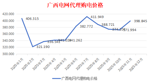 11月广西电网代理购电价格每度电比上月上涨近3分,数据来自北极星电力网