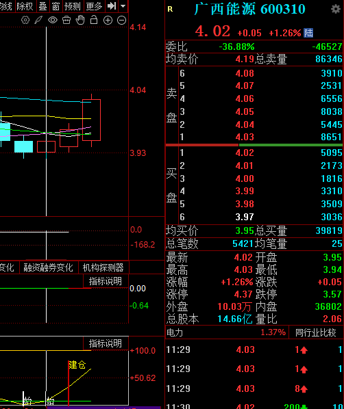 广西能源底部红三兵 KDJ 金叉 MACD 量能潮翻红 股价突破60日均线 周线的MACD也开始翻红了 这一切表明 上升趋势已经形成 哈哈 主力潜伏那么久终于浮出水面了 广西能源的子公司 广东佰昌能源科技有限公司就是做电力设备的这是近期的热点