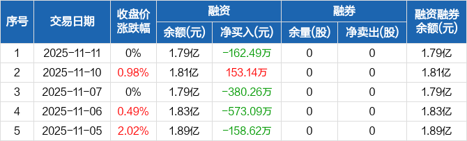 广西能源:融资净偿还162.49万元,融资余额1.79亿元(11-11)