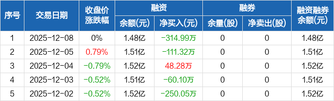 广西能源:融资净偿还314.99万元,融资余额1.48亿元(12-08)