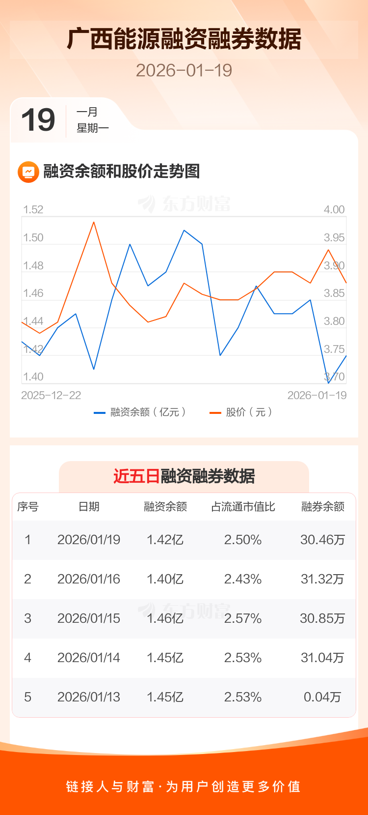 交易所最新数据显示,广西能源于2026年1月19日获融资买入1244.84万元,融资偿还1066.66万元,当日融资净买入178.18万元。目前,该股融资余额1.42亿,占流通市值比例为2.50%。