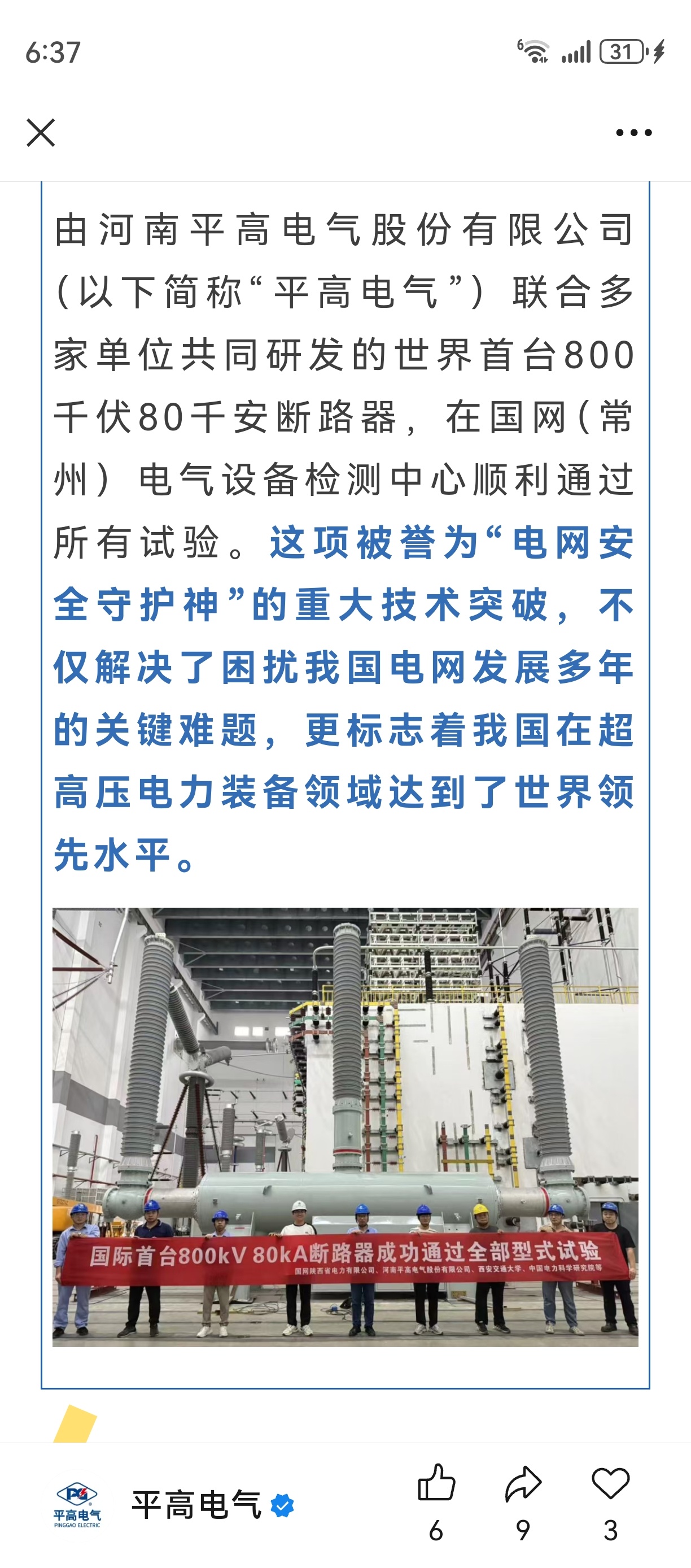 所有人都低估了平高的这项突破世界级的技术对我们特高压的影响力!