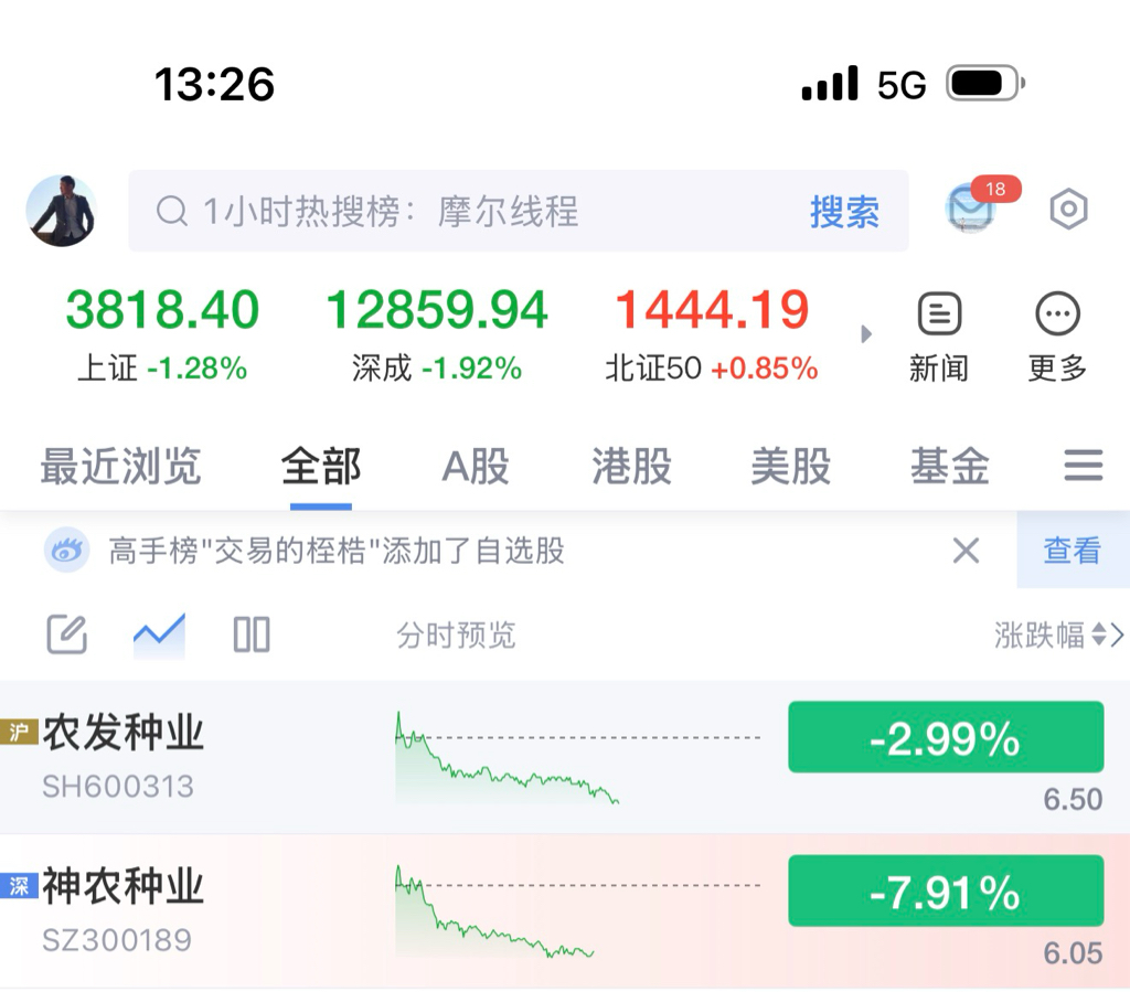 $平高电气(SH600312)$ 神农种业20%涨停的时候农发涨1.6%,农发涨副为神农8%,今天神农跌8%农发跌3%,农发跌幅相当于神农37%,也就是数码农发下跌从来不让人失望,上涨能让你大失所望!!!!!上涨比例为神农8%,下跌比例未神农37%,这就是今年神农种业领先农发涨幅70%以上原因…………