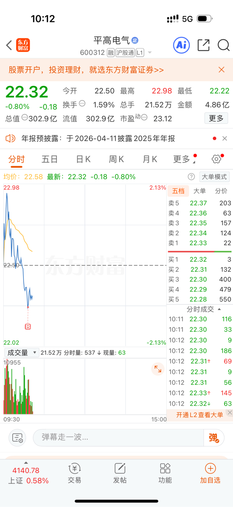 22.25低吸博弈$平高电气(SH600312)$ #实盘记录# #投资干货# #投资随笔# #强势机会#