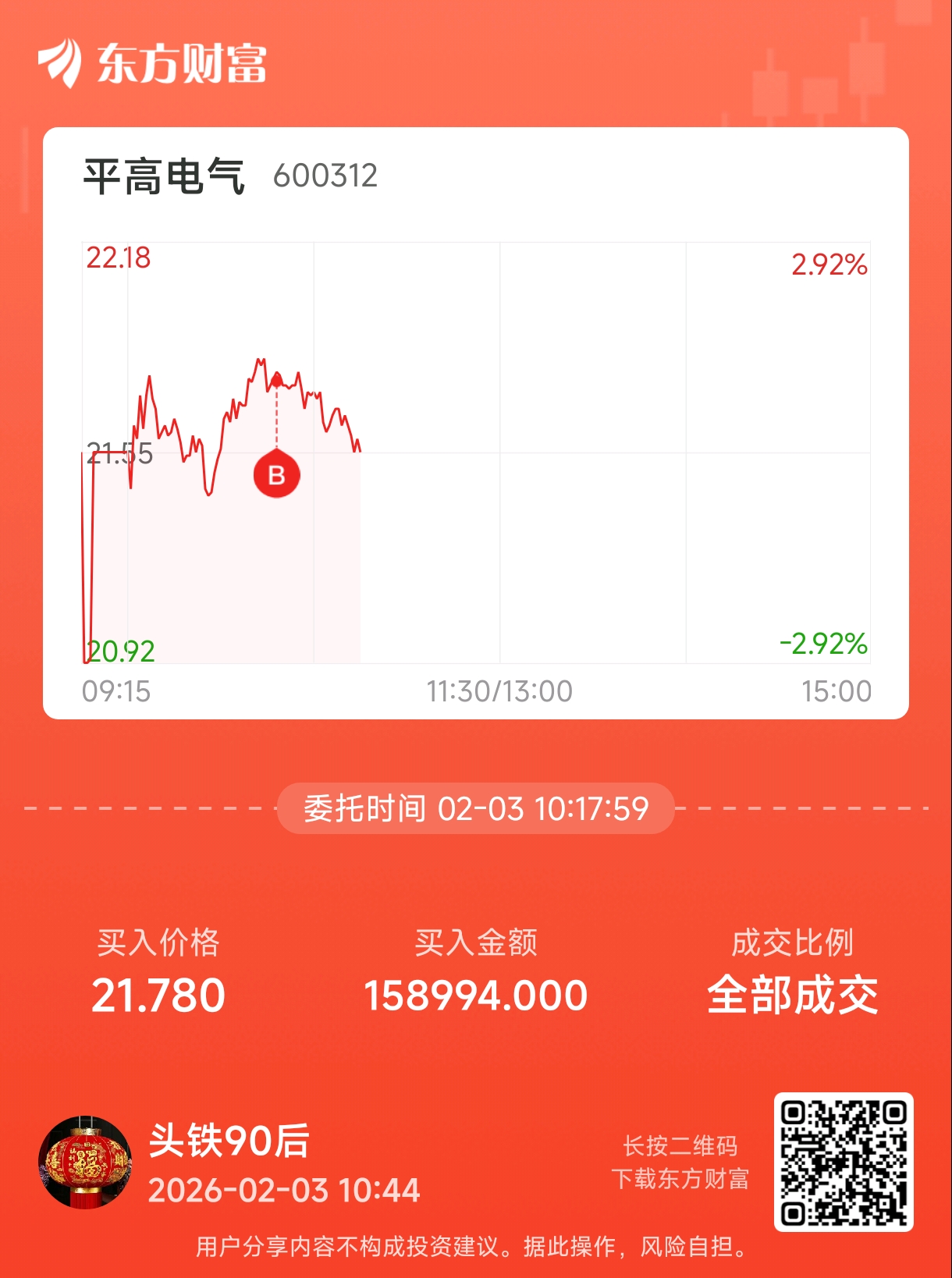 温馨提示: 1.根据《证券法》规定,禁止编造、传播虚假信息或者误导性信息,扰乱证券市场;2.用户在本社区发表的所有资料、言论等仅代表个人观点,与本网站立场无关,不对您构成任何投资建议。用户应基于自己的独立判断,自行决定证券投资并承担相应风险。《东方财富社区管理规定》