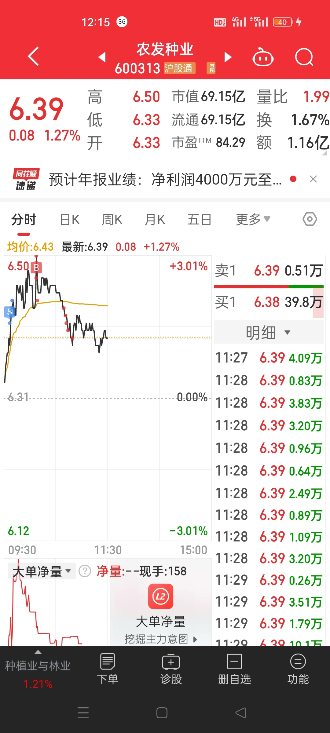 $农发种业(SH600313)$ 它嘛得,看着那一波急拉要冲板,一激动冲进去了家这