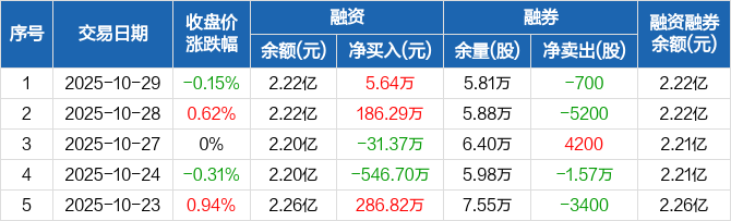 农发种业:融资净买入5.64万元,融资余额2.22亿元(10-29)