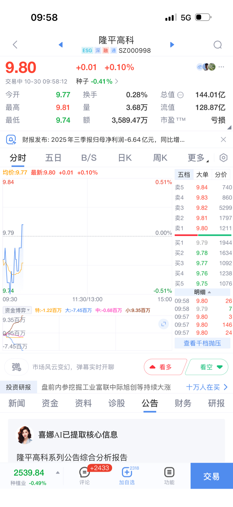 发布财报亏6亿以上的隆平高科盘中异动拉红,唯有农发种业完全不顾投资者利益一早跌幅