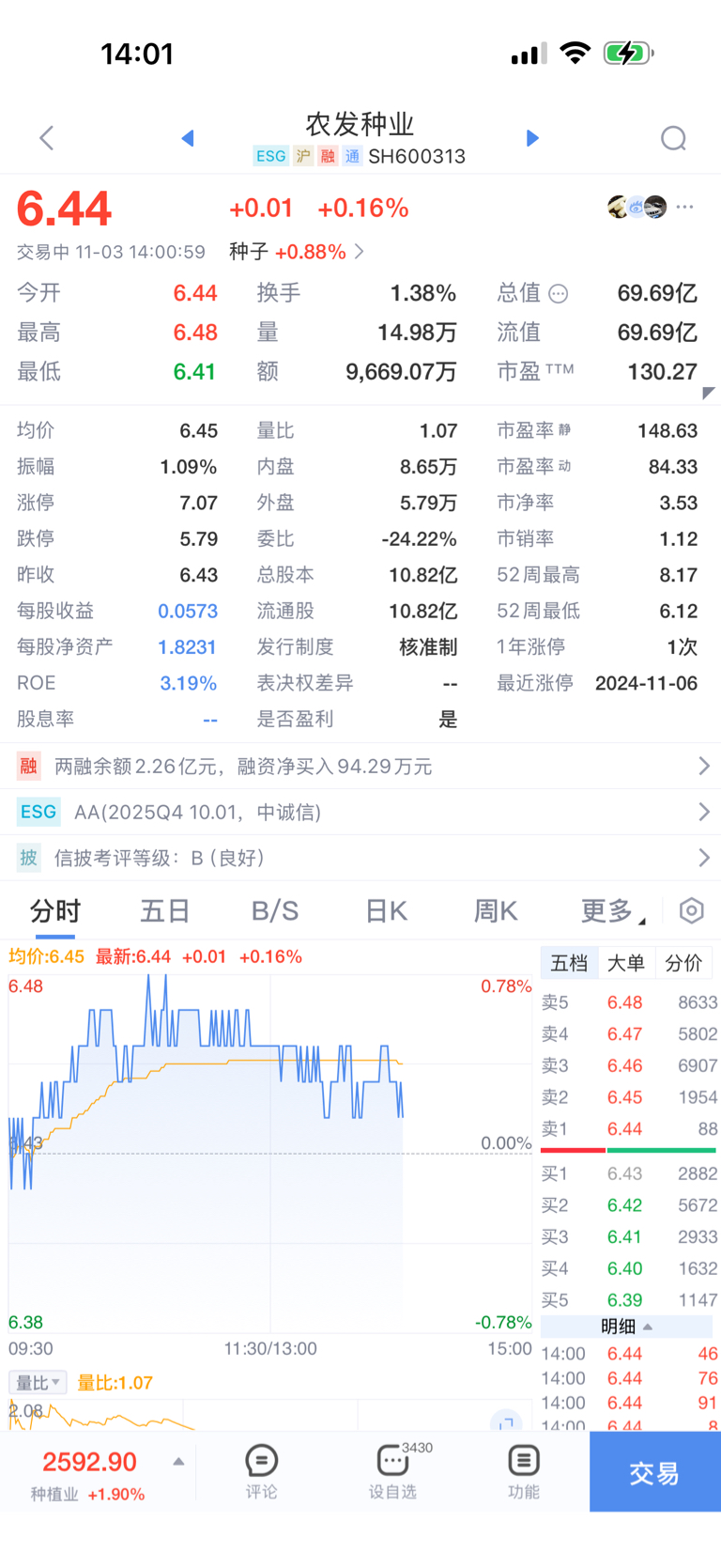 $农发种业(SH600313)$ 随着时间推移,早上跌2%以上创业板 沪指目前都比早上最高6.48的农发种业涨幅大,无限打压股价,三天综合下来神农种业比农发多涨10%以上!!!这就是我打010 88067521董事会给我回答的跟板块???请给全体投资者一个合理解释!!!!@农发种业 果然又跑不赢早上跌2%以上的创业板和沪指