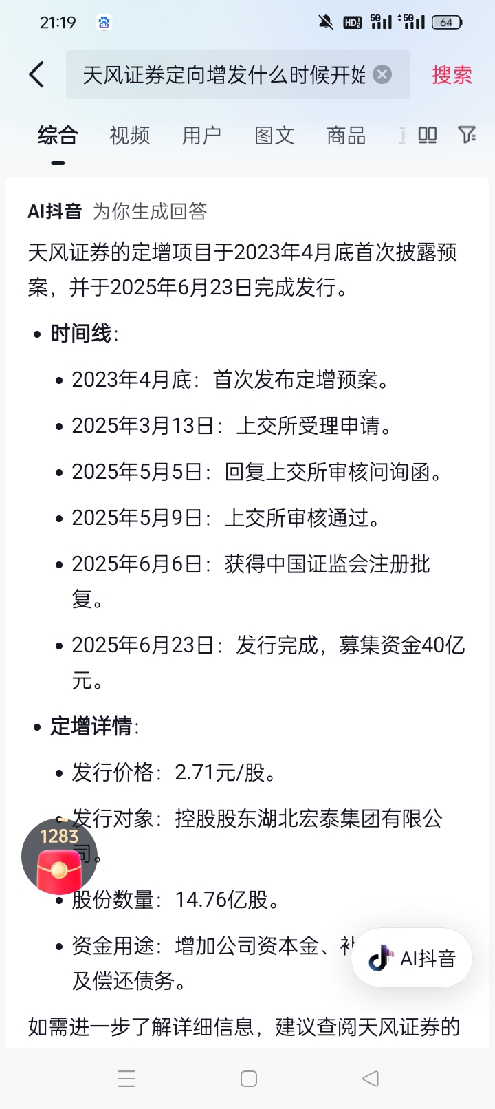 $农发种业(SH600313)$ 我特意搜了几个定增股,也不一定跌吧。这个天风证券定增价2.71,6月份现价4元,也相差1.3元,后面还大涨。定增价是固定,不管现价多少都是这个价买入,砸回5元亏的是短线主力