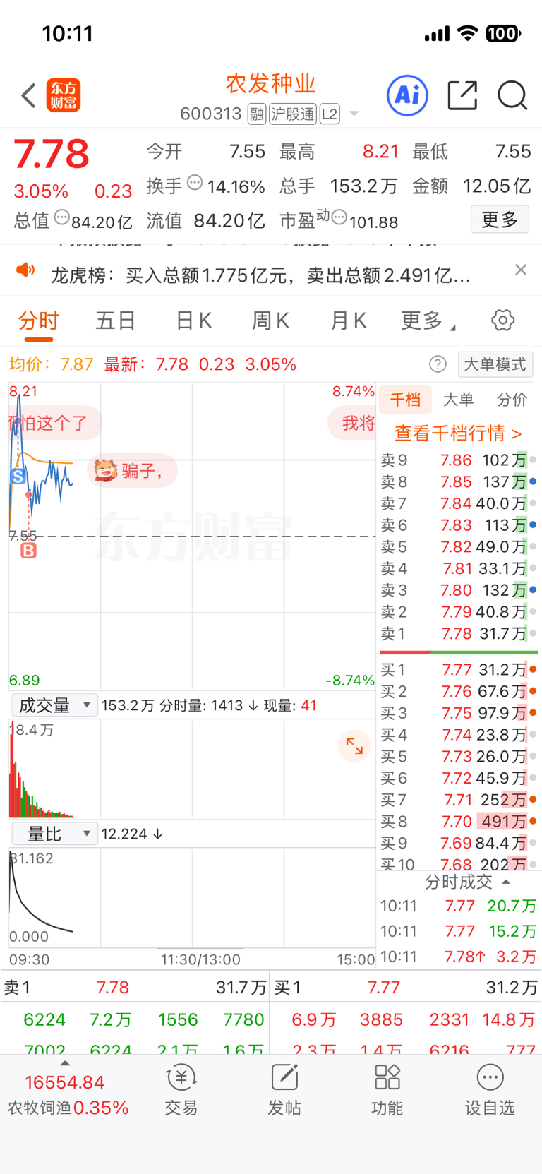 $农发种业(SH600313)$ 不到15以上不清仓,坚持持有到翻倍。