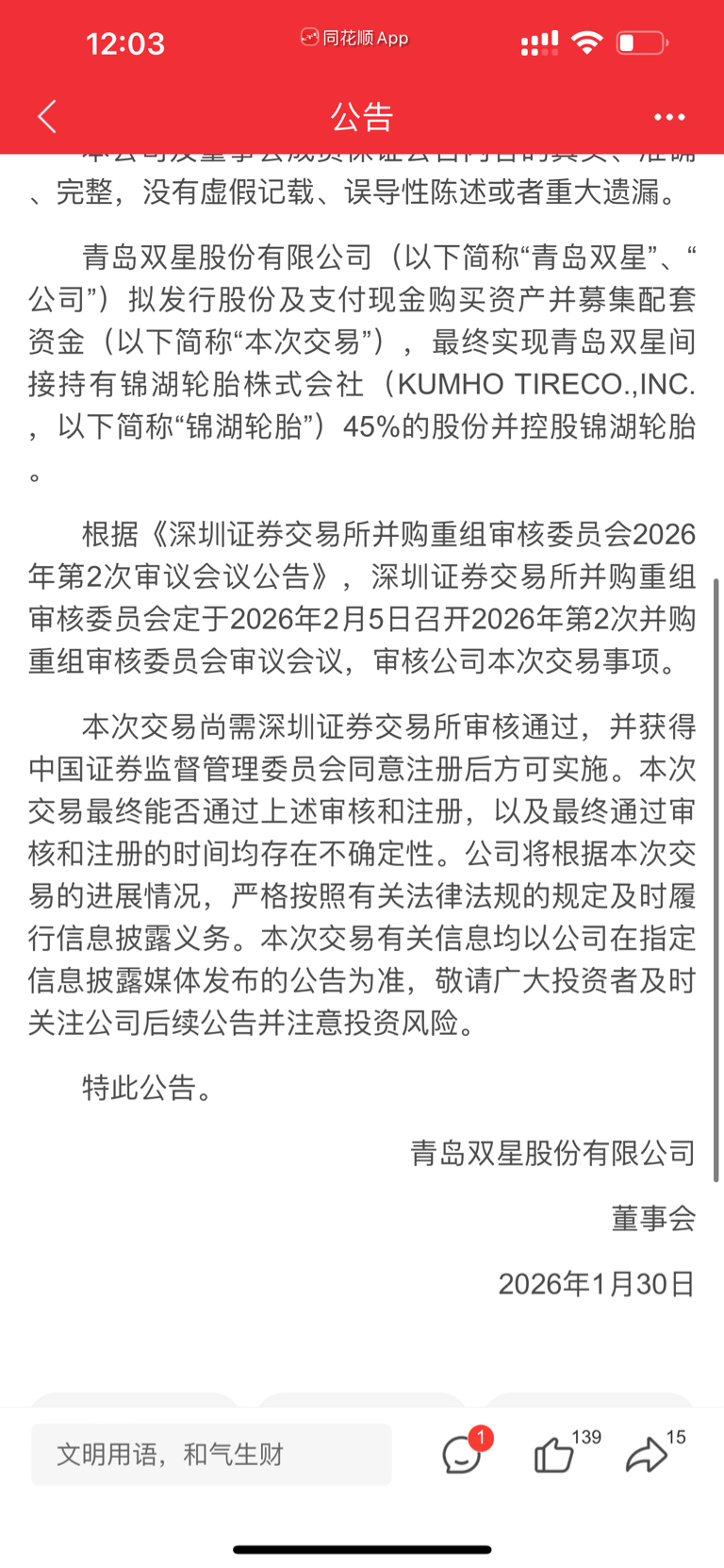 $农发种业(SH600313)$ 能不能回本你们自己把握 青岛双星 发布上会重组 快停牌了 言尽于此 能救一个是一个