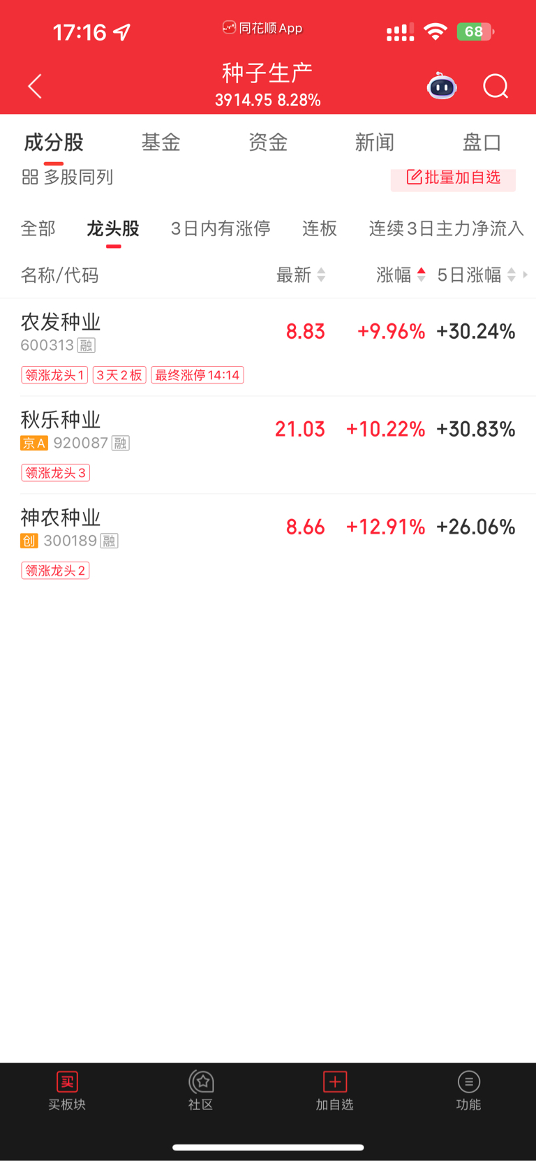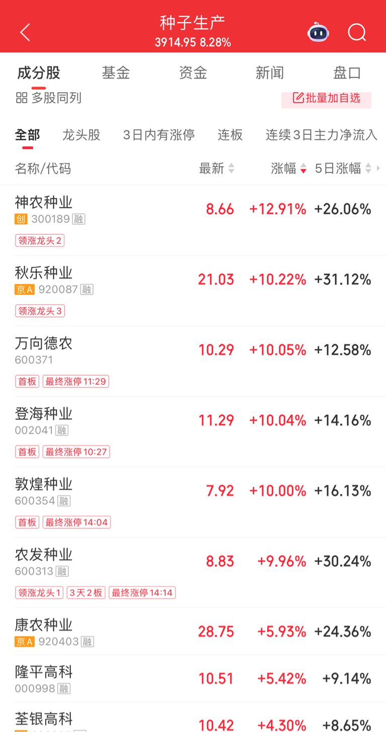 农业的细分,目前还没有发散到大农业。板块有了,坐等起飞