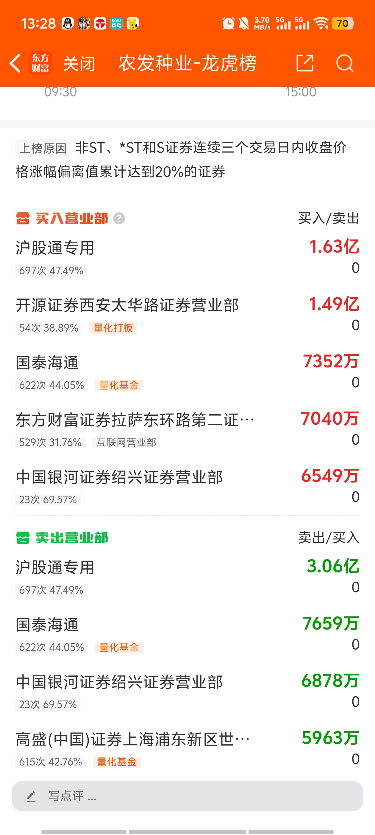 $农发种业(SH600313)$ 开源第一个板就在了一直没走今天是不是走了