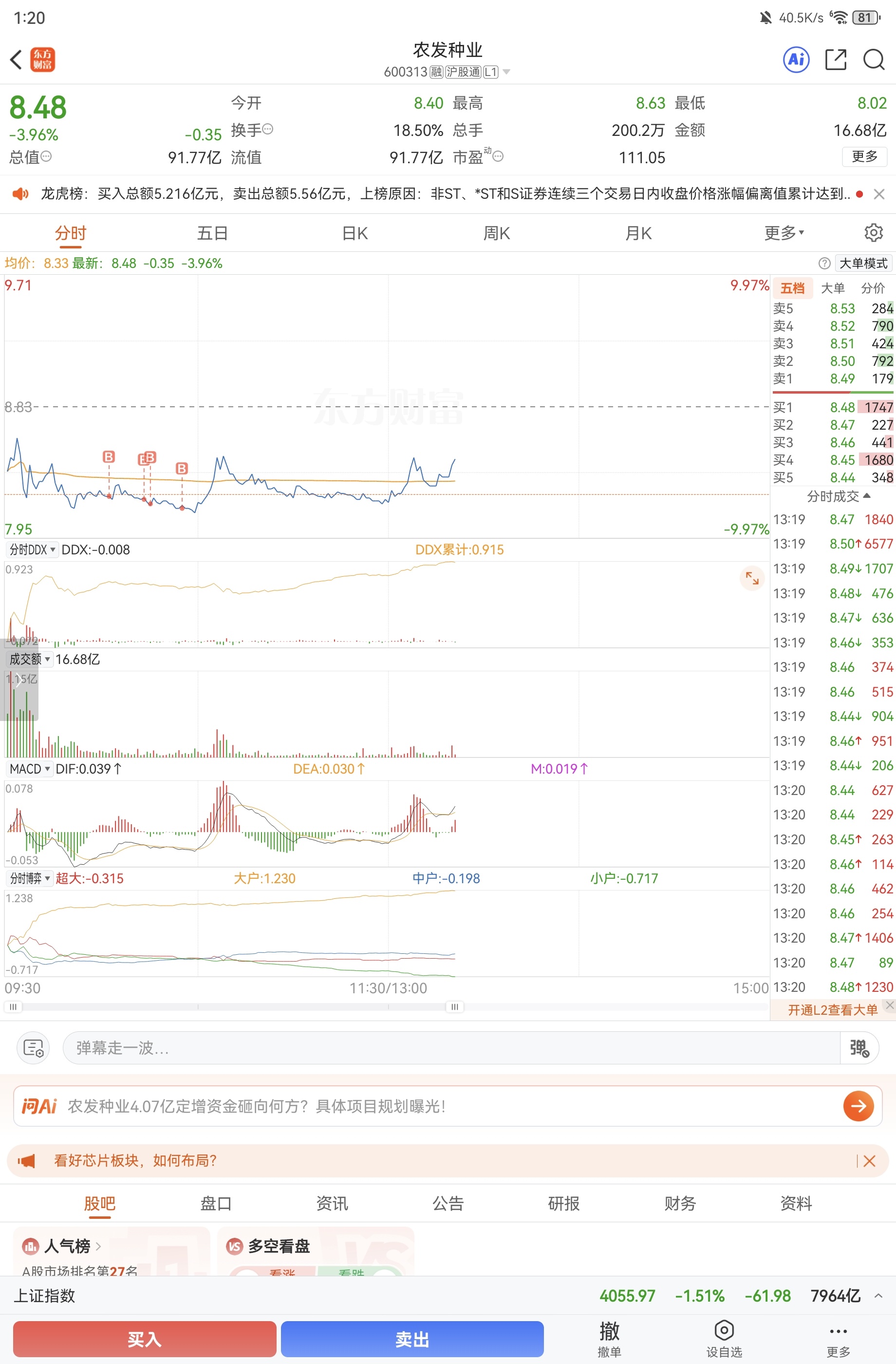$农发种业(SH600313)$ #炒股日记# 跌吧,我还扛得住