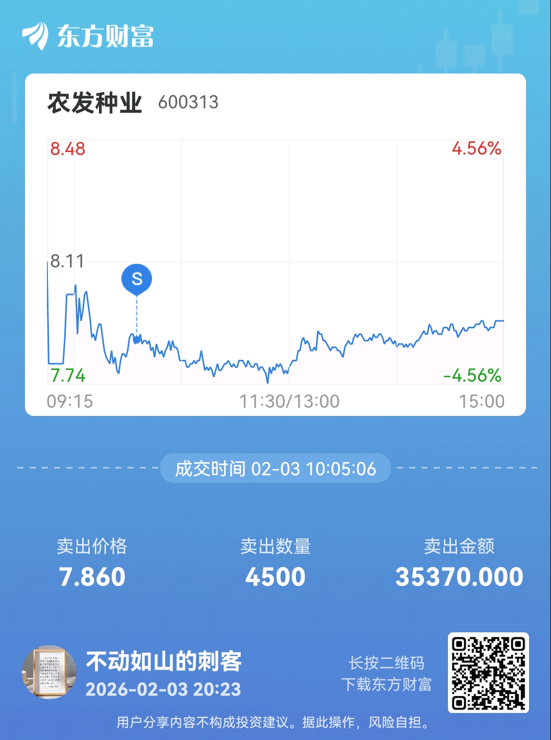 温馨提示: 1.根据《证券法》规定,禁止编造、传播虚假信息或者误导性信息,扰乱证券市场;2.用户在本社区发表的所有资料、言论等仅代表个人观点,与本网站立场无关,不对您构成任何投资建议。用户应基于自己的独立判断,自行决定证券投资并承担相应风险。《东方财富社区管理规定》